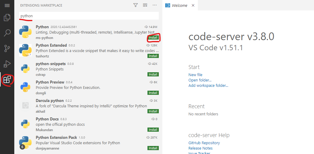 4. code-server python 설정