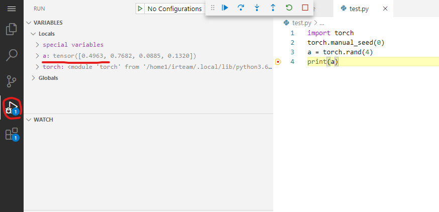 이제 설정이 어느정도 완료되었으니 python파일을 디버깅 하는 것을 한번 해보자