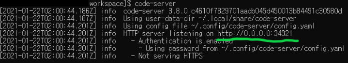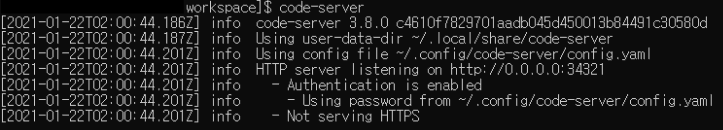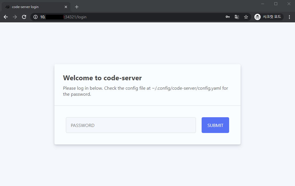 마지막으로 password를 pc에 복사해둔다. 나중에 code-server에 처음 접속할 때 필요하다. 그 이후에는 웹브라우저에 자동완성으로 사용하면 된다.
