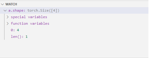 위 처럼 a.shape의 값이 4임을 watch를 통해 확인할 수 있다.
