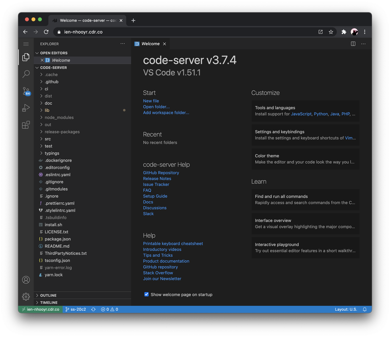 이 포스트에서는 code-server 3.8.0 기준 2020.10.xxx를 설치한다.