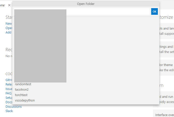 vscodepython 폴더를 workspace로 선택해준다.
